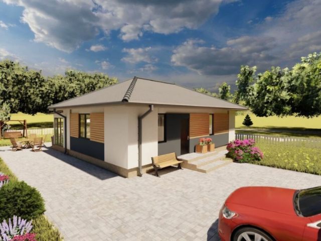 На первом этаже дома в стиле Райта расположены просторная кухня, совмещённая со столовой, гостиная со вторым светом, кабинет, холл, прихожая, гардеробная,санузел, а также кладовая, котельная, тамбур, встроенный гараж на одно машиноместо и крытая терраса.