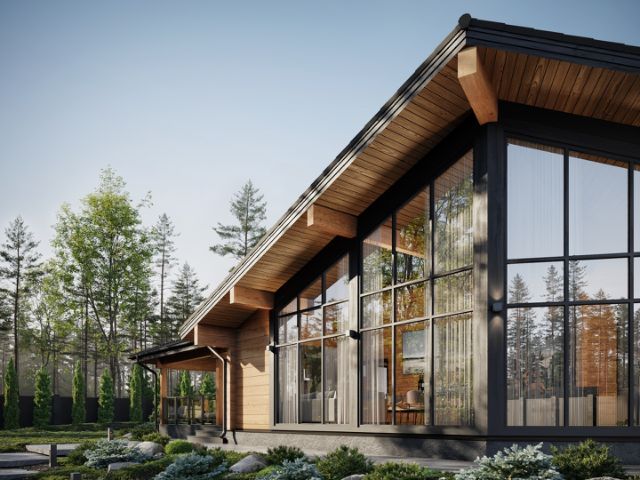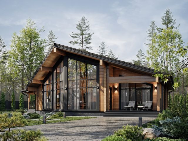 Одноэтажный дом из клееного бруса в скандинавском стиле. Этот элегантный и современный дом из клееного бруса предлагает уют и комфорт, о которых вы всегда мечтали. Его минималистичный дизайн и эргономичная планировка обеспечивают удобство и функциональность каждой комнаты.