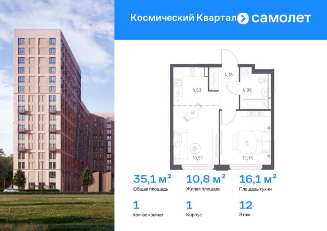 Предлагается 1-комнатная квартира комфорт-класса 38,8 кв.м в корпусе 1 на 12 этаже, в ЖК "Космический Квартал" Квартира без отделки. Доступность опции "отделка" и возможность комплектации мебелью и декором уточняйте у застройщика. Приобрести квартиру возможно по специальным акциям от застройщика, с текущими условиями акций можно ознакомиться в блоке "Акций". Цена динамическая и может отличаться, уточняйте актуальность у застройщика. "Космический Квартал" находится в Московской области, в Королеве. В Королеве находятся несколько парков и лесов, а реки Клязьма и Яуза окружают наукоград с двух сторон. Путь до Москвы будет быстрым и удобным: до МКАД — 20 минут на автомобиле, а до ж/д станция Болшево - 8 минут на авто или 20 минут пешком. В проекте предусмотрены собственный детский сад, многоуровневые паркинги, а также магазины, спортзал, ресторан и аптеки на первых этажах домов. Неподалеку от квартала находятся городские гимназии 3 и "Ковчег" и лицей 4. "Космический Квартал" — это 3 монолитных дома высотой 12-17 этажей. Во внутреннем приватном дворе-парке будут детские и спортивные площадки. А для занятий спортом будут обустроены воркаут-пространства. Все подъезды — с безбарьерным входом. В лобби есть помещения для велосипедов и колясок. На техническом этаже — индивидуальные кладовые для сезонных вещей. Продуманные планировки от небольших студий до просторных 4-комнатных квартир с гардеробной, постирочной и гостевым санузлом. Квартиры сдаются как с отделкой, так и без нее.