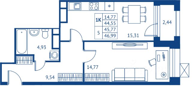 Продаётся 1-комнатная квартира в сданном доме (Корпус 9, 2 очередь), срок сдачи: IV-кв. 2023, общей площадью 42.5 кв.м., на 4 этаже. Расположение, транспортная доступность Жилой комплекс River Park - это 19 жилых домов высотой 7-17 этажей, которые будут построены практически на берегу реки Клязьма, рядом с лесопарковой зоной (от нахождения комплекса в окружении этих природных объектов и произошло название новостройки). Город Королёв находится рядом с Москвой, поэтому добраться от него до столицы будет несложно. До МКАД отсюда 11,5 километров. Недалеко от комплекса есть выезд на Ярославское шоссе. До ближайших станций метро "Бабушкинская" и "Медведково" на автомобиле и общественном транспорте можно доехать примерно за полчаса. До остановок автобусов и маршрутных такси от комплекса пешком примерно 3-5 минут. Рядом с River Park располагается железнодорожная станция, от которой электропоезда следуют до Ярославского вокзала (время в дороге - примерно 45 минут). Инфраструктура Жилой комплекс River Park будет окружать полноценная социально-торговая инфраструктура. На его территории появятся: детские образовательные и медицинские учреждения, спорткомплекс с бассейном и теннисным кортом, бизнес-центр, многофункциональный комплекс с подземным паркингом и кинотеатром. Кроме того, поблизости от River Park находится супермаркет "Магнит" и торгово-развлекательный комплекс "Каспий", отделение Сбербанка. В городе Королёв инфраструктура развита хорошо. Имеется множество торговых центров, предприятий услуг и сервиса, сетевых супермаркетов, детских образовательных и медицинских учреждений, культурных центров. Не нужно забывать и о том, что город - "космическая" столица России, и здесь находится несколько технических ВУЗов (в частности, факультет Ракетно-Космической техники МГТУ им. Н.Э. Баумана), а также ведущие предприятия российской космической промышленности. Одно из главных преимуществ жилого комплекса River Park - наличие поблизости обширной природной инфраструктуры. Он находится в нескольких метрах от реки Клязьма, что придется по душе заядлым рыбкам и любителям водных процедур в теплое время года. Рядом проходит обширная лесная зона, где можно ежедневно гулять и заниматься оздоровительными процедурами на свежем воздухе. Состояние экологии округа находится на очень хорошем уровне. Надёжность застройщика Жилой комплекс River Park - это проект созданной в 2010 году компании ООО "Профи-инвест", специализирующейся на строительстве жилой, коммерческой и промышленной недвижимости, а также на возведении новых дорог в городах и посёлках Московской области. Во всех своих проектах компания выступает одновременно в качестве инвестора, застройщика и подрядчика, самостоятельно осуществляя полный цикл строительно-монтажных работ. На счету компании "Профи-инвест" строительство множества жилых домов в городах: Щёлково, Балашиха, Ивантеевка, Пушкино. Жилой комплекс River Park - самый крупный и масштабный проект ООО "Профи-инвест". Архитектура После завершения строитель