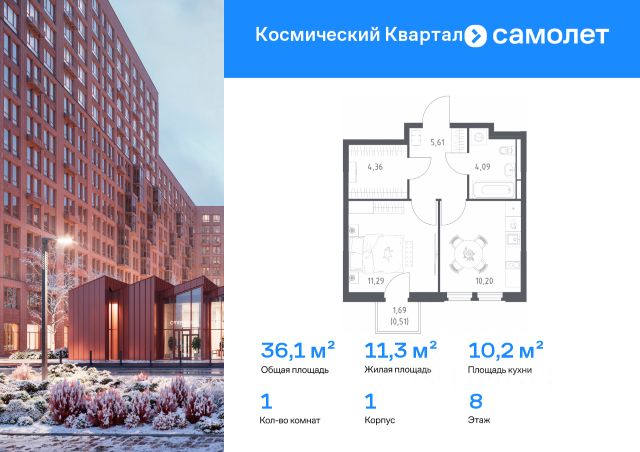 Строим кварталы для жизни с заботой о будущем. Предлагается 1-комнатная квартира комфорт-класса 35,55 кв.м в корпусе 1 на 11 этаже, в ЖК "Космический Квартал" Квартира без отделки. Доступность опции "отделка" и возможность комплектации мебелью и декором уточняйте у застройщика. Приобрести квартиру возможно по специальным акциям от застройщика, с текущими условиями акций можно ознакомиться в блоке "Акций". Цена динамическая и может отличаться, уточняйте актуальность у застройщика. "Космический Квартал" находится в Московской области, в Королеве. В Королеве находятся несколько парков и лесов, а реки Клязьма и Яуза окружают наукоград с двух сторон. Путь до Москвы будет быстрым и удобным: до МКАД — 20 минут на автомобиле, а до ж/д станция Болшево - 8 минут на авто или 20 минут пешком. В проекте предусмотрены собственный детский сад, многоуровневые паркинги, а также магазины, спортзал, ресторан и аптеки на первых этажах домов. Неподалеку от квартала находятся городские гимназии 3 и "Ковчег" и лицей 4. "Космический Квартал" — это 3 монолитных дома высотой 12-17 этажей. Во внутреннем приватном дворе-парке будут детские и спортивные площадки. А для занятий спортом будут обустроены воркаут-пространства. Все подъезды — с безбарьерным входом. В лобби есть помещения для велосипедов и колясок. На техническом этаже — индивидуальные кладовые для сезонных вещей. Продуманные планировки от небольших студий до просторных 4-комнатных квартир с гардеробной, постирочной и гостевым санузлом. Квартиры сдаются как с отделкой, так и без нее. Продается 1-комнатная квартира в микрорайоне Юбилейный в городе Королев.