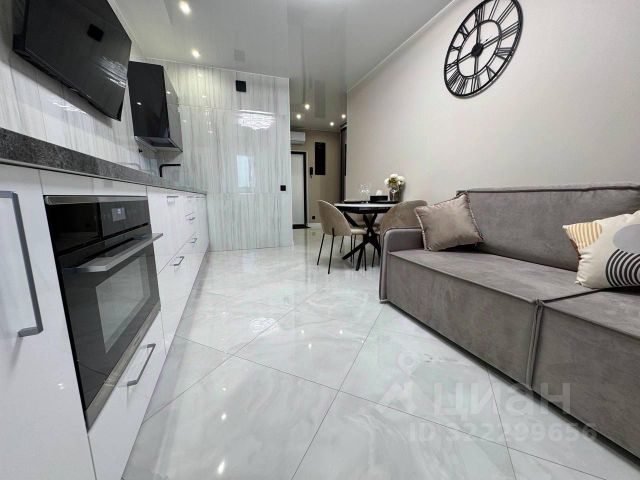 Кухня гостиная -17м, фартук-плитка керамогранит во всю стену до потолка. Кухня со встроенной мебелью и техникой фирмы "Мария" гарантия качества.. Встроенная кухня с доводчиками и фурнитурой , варочная панель индукционная, духовой шкаф с функцией СВЧ с конвекцией, холодильник встроенный Инверторный Линейный компрессор, встроенная посудомоечная машина на 60 , смеситель производство Германия комбинированный с краном для фильтра, стол раздвижной 1400см, огромный диван раскладной( спальное место 200*160), вытяжка ширина 900, телевизор со смарт ТВ с диагональю 50", люстры светодиодные с дистанционным управлением.