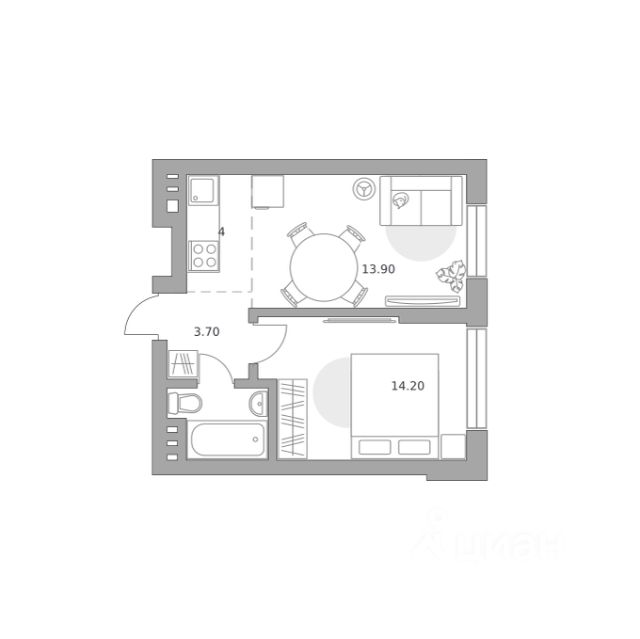 Продаётся 2-комнатная квартира 67, площадью 42,50 м², на 4 этаже в ЖК "Театральный парк" корпус 26. Стоимость — от 9212689 руб. Квартира без отделки, планировка распашная, окна во двор.