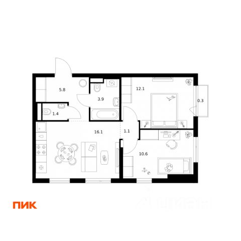 Строим кварталы для жизни с заботой о будущем. Предлагается 2-комнатная квартира комфорт-класса площадью 60,95 кв.м в корпусе 1 на 3-м этаже, в жилом комплексе "Космический Квартал".