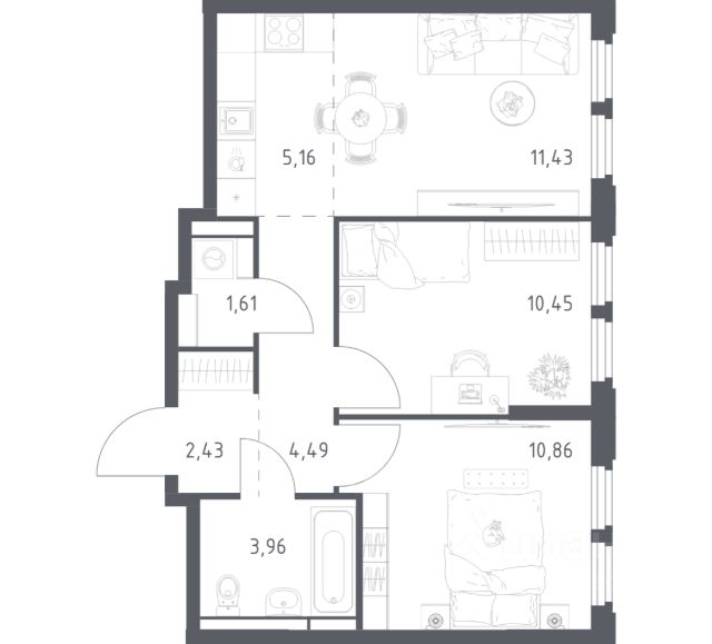 Строим кварталы для жизни с заботой о будущем. Предлагается 2-комнатная квартира комфорт-класса площадью 49,3 кв.м в корпусе 1 на 2-м этаже, в жилом комплексе "Космический Квартал". Квартиры комплекса — на выбор: могут быть как с отделкой, так и без. В случае с готовой отделкой в комнатах и прихожей уже будут обои, натяжные потолки и ламинат, а в санузлах — керамогранит на полу и керамическая плитка на стенах. Мы подведем все коммуникации и установим сантехнику. Светлые тона визуально делают комнаты еще просторнее. Вы легко воплотите любые идеи по обустройству и создадите интерьер в современном или классическом стиле. Можно сразу заказать кухню, комплекты мебели, светильники, декор и даже посуду в нашем маркетплейсе — мы полностью подготовим квартиру к новоселью. Приобрести квартиру возможно по специальным акциям от застройщика, с текущими условиями акций можно ознакомиться в блоке "Акций". Цена динамическая и может отличаться, уточняйте актуальность у застройщика. "Космический Квартал" находится в Московской области, в Королеве. В Королеве находятся несколько парков и лесов, а реки Клязьма и Яуза окружают наукоград с двух сторон. Путь до Москвы будет быстрым и удобным: до МКАД — 20 минут на автомобиле, а до ж/д станция Болшево - 8 минут на авто или 20 минут пешком. В проекте предусмотрены собственный детский сад, многоуровневые паркинги, а также магазины, спортзал, ресторан и аптеки на первых этажах домов. Неподалеку от квартала находятся городские гимназии 3 и "Ковчег" и лицей 4. "Космический Квартал" — это 3 монолитных дома высотой 12-17 этажей. Во внутреннем приватном дворе-парке будут детские и спортивные площадки. А для занятий спортом будут обустроены воркаут-пространства. Все подъезды — с безбарьерным входом. В лобби есть помещения для велосипедов и колясок. На техническом этаже — индивидуальные кладовые для сезонных вещей. Продуманные планировки от небольших студий до просторных 4-комнатных квартир с гардеробной, постирочной и гостевым санузлом. Квартиры сдаются как с отделкой, так и без нее. Купить 2-комнатную квартиру в новостройке в микрорайоне Юбилейный в городе Королев.