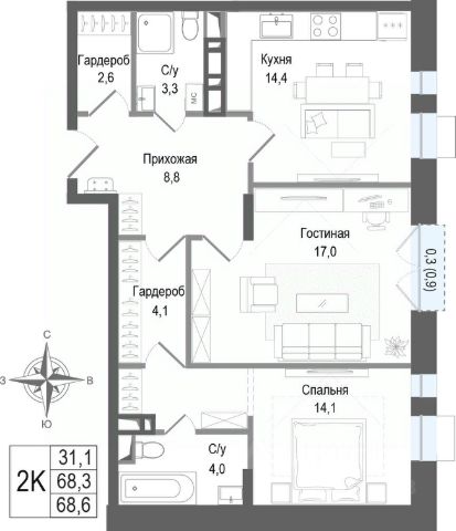 Продаётся 2-комнатная квартира в сданном доме (Полевая, 7 (Корпус 26)), срок сдачи: I-кв. 2025, общей площадью 32.4 кв.м., на 4 этаже. Расположение, транспортная доступность