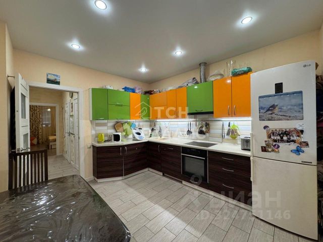 Новым собственникам остаётся кухня со встроенной техникой: варочная панель Воsh, духовка, вытяжка, большой холодильник LG и стиральная машина Аristоn. В прихожей, коридоре и спальне размещены встроенные шкафы, выполненные на заказ под размеры помещений. Ванная комната и туалет отделаны плиткой в едином ярко-оранжевом стиле, оборудованы гарнитуром и просторной ванной 1,7м. В туалете размещен бойлер на 80л, что удобно в плановых отключениях горячей воды летом. Лоджия оборудована полками под хранение крупногабаритных предметов. Вся встроенная мебель остается покупателю.