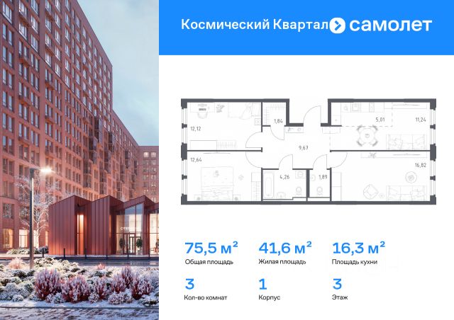 Продается 3-комнатная квартира 39 в строящемся ЖК "КИНОКВАРТАЛ", Корпус 1. Квартира расположена на 8 этаже, общая площадь 70,3 кв.м. Дом находится в тихом зеленом районе города, на берегу реки Клязьмы. Невысокая этажность, секции от 4 до 8 этажей, все оснащены лифтом. Авторская архитектура, безбарьерная среда, функциональные планировки классического и евро-формата, есть уникальные форматы — квартиры в 2-х уровнях. В ряде квартир потолки выше 3-х метров, панорамные окна, "французские балконы". Каждый может выбрать что-то своё — жизнь с видом на реку или на красивый закрытый двор "без машин". Жилой "Киноквартал" — это квартал у воды с обширной благоустроенной набережной, прогулочными пешеходными и вело-дорожками, смотровыми площадками и пляжем. Помимо существующей инфраструктуры окружения, в самом ЖК будут функционировать различные социальные и коммерческие объекты: муниципальный детский сад на 120 мест с собственной обширной территорией и зонированием под игровые и спортивные занятия детей; кабинет врача общей практики; физкультурно-оздоровительный комплекс; различные торговые помещения и предприятия услуг. В 15 минутах от ЖК строится большая новая муниципальная школа. Жилой комплекс граничит с территорией реконструируемого санатория с бассейном, SPA и лечебными услугами. Рядом с ЖК Киноквартал расположены остановки общественного транспорта, 2 ж/д станции (от 15 минут), также в 2028 году запланировано открытие МЦД-5 "Болшево".