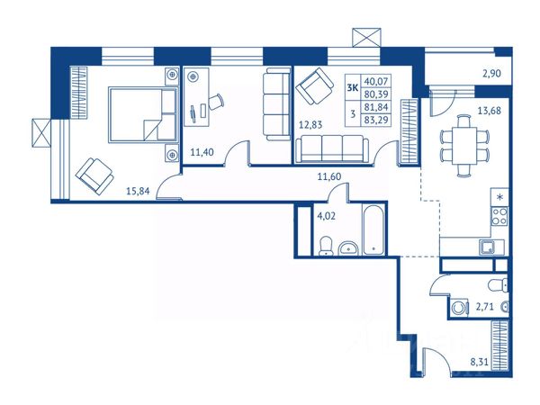 Продается трехкомнатная квартира 27 в новостройке ЖК "Поколение Первых" по адресу Московская область, Королев городской округ, Королев, ул. Калининградская, корп. 1. Общая площадь квартиры - 80.39 кв. м., этаж 4 из 16, секция 1. Тип проекта, по которому построен дом - монолит, компания-застройщик - Профи-Инвест, ООО СЗ Профи-Королев. Стоимость квартиры - 16399560 Р. Срок сдачи - 2 квартал 2028. Более подробная информация по телефону.