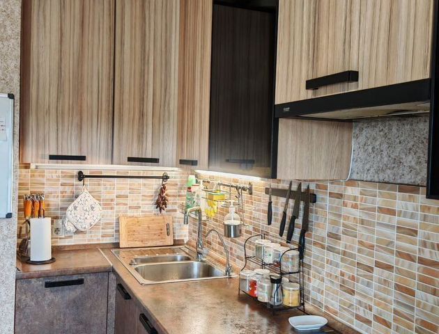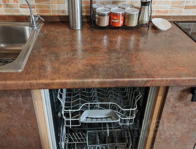 Кухонный гарнитур с встроенной техникой - варочная панель, духовка, вытяжка, посудомойка.