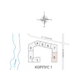 Планировка распашонка, окна выходят на тихий двор, в окружении которого находится дом.