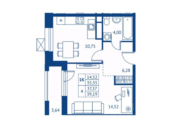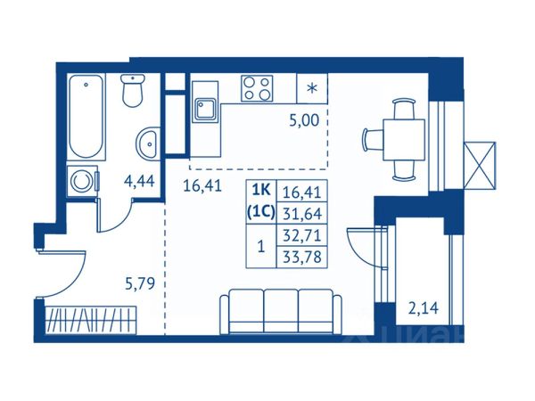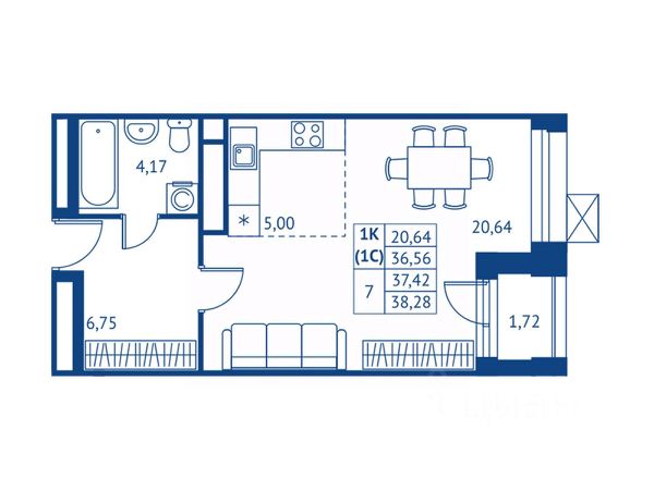 Общая площадь 31,5 метр (по БТИ), комфортная комната - 17 метров, функциональная кухня - 10,5 метров, совмещенный санузел, окна ПВХ.