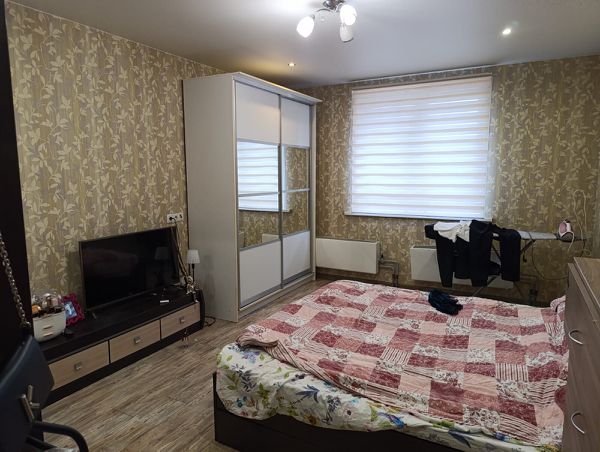 Площадь квартиры 41,6 метра плюс лоджия 2,3 метра. Комната 14,4 метров оснащена встроенной гардеробной размером 1,77*1,43м (2,53м2) объёмом 6,91м3. Размер комнаты 3,38*3,52м позволяет с комфортом разместить широкую 2-спальную кровать. Мультифункциональная кухня-столовая 18,8 метров, где разместился просторный угловой диван-кровать, с выходом на утеплённую лоджию оснащена всей необходимой встроенной техникой: МВП, посудомойка, холодильник, духовка, варочная панель, вытяжка, фильтр воды. Дизайнерское пано, разместившееся в углу, создаёт дополнительный уют. Окна ПВХ с 2-камерными стеклопакетами. При проведении ремонта применялись только высококачественные материалы. При устройстве полов была произведена керамзитная засыпка толщиной 13см, что обеспечивает повышенный уровень тепло- и шумоизоляции. Потолки 2-уровневые. Встроенные светильники по периметру, потолочные 9-плафонные светильники в центральной части в сочетании с лёгкими полупрозрачными плафонами и глянцевый перламутровый натяжной потолок тёмных цветов создают ощущение объёма, сравнимого с присутствием "второго света". В совмещённом санузле размещена полноценная ванна, устроена "гигиеническая" точка. В квартире находится 2 стояка подачи и отведения воды, что обеспечивает независимость в случае проведения ремонтных работ одного из них. Для бесперебойного обеспечения квартиры горячей водой в систему водоснабжения квартиры инсталлирован накопительный водонагреватель. Сплит-система кондиционирования воздуха обеспечивает комфорт в жаркие летние дни.