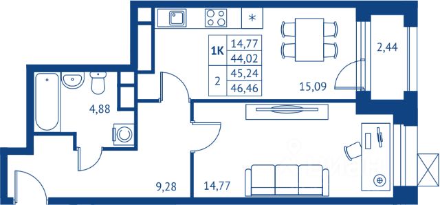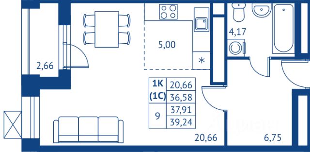 Продаётся 1-комнатная квартира в строящемся доме (Дом 2), срок сдачи: II-кв. 2028, общей площадью 39.95 кв.м., на 22 этаже. Жилой комплекс "Поколение Первых" - новый проект от ГК "Профи Инвест", осуществляющей деятельность на рынке жилой недвижимости более 15 лет (построено более 1 млн. кв. метров жилья). Жилой комплекс располагается в центре города Королёв возле ТЦ "Глобус", рядом с выездом на скоростное Ярославское шоссе. В составе комплекса 10 домов переменной этажности, размещенных на стилобатной части, в которой расположен двухуровневый паркинг на 1 166 машино-мест и 124 кладовых помещения. На первых этажах будут расположены коммерческие площади под ритейл и необходимые жителям сервисы: ФОК с бассейном, сауной и спа-зоной, культурно-досуговый центр, офисные помещения, магазины, аптека, кафе, банки, помещения бытового обслуживания. Проектом предусмотрено строительство детского сада на 210 мест, а также строительство пристройки на 450 мест в средней общеобразовательной школе 5, находящейся по адресу: Октябрьский бульвар, 33. Район застройки жилого комплекса "Поколение первых" характеризуется развитой инфраструктурой, что позволит резидентам проекта бизнес-класса #вКоролевеЖить максимально комфортно, имея все "под рукой" и в шаговой доступности. Рядом с жилым комплексом находятся детские сады и школы, театр юного зрителя, городские парки и скверы, лыжная трасса и велосипедная дорожка. Сам город Королёв, находится к северо-востоку от Москвы, в 23 км от центра, в 6 км от МКАД и в 30 минутах езды на автомобиле до ЦКАД. По данным статистики, примерно 67% жителей города имеют высшее или среднетехническое образование. Сегодня Наукоград Королёв - это научно-технический центр, обладающий огромным потенциалом к дальнейшему развитию инфраструктуры, обеспечивающей комфортное проживание населения, его занятость и интеллектуальное развитие.