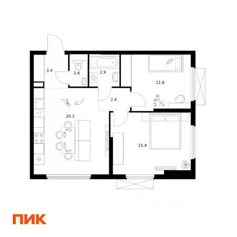 Строим кварталы для жизни с заботой о будущем. Предлагается 2-комнатная квартира комфорт-класса площадью 54,06 кв.м в корпусе 1 на 12-м этаже, в жилом комплексе "Космический Квартал".