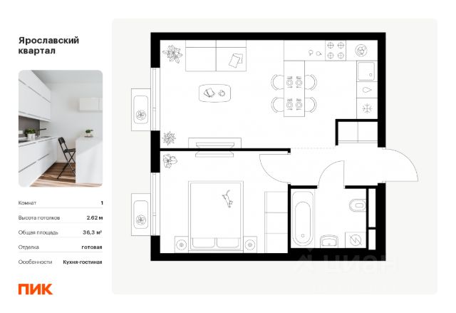 Квартиры комплекса — на выбор: могут быть как с отделкой, так и без. В случае с готовой отделкой в комнатах и прихожей уже будут обои, натяжные потолки и ламинат, а в санузлах — керамогранит на полу и керамическая плитка на стенах. Мы подведем все коммуникации и установим сантехнику. Светлые тона визуально делают комнаты еще просторнее. Вы легко воплотите любые идеи по обустройству и создадите интерьер в современном или классическом стиле. Можно сразу заказать кухню, комплекты мебели, светильники, декор и даже посуду в нашем маркетплейсе — мы полностью подготовим квартиру к новоселью.