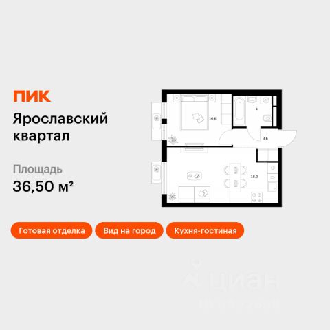 Продаётся 1-комн. квартира площадью 38,2 кв.м на 21 этаже 25 этажного дома (Корпус 2.2, Секция 1) проекта ПИК Ярославский квартал. Светлый просторный подъезд на уровне земли, функциональная планировка, большие окна, c отделкой.
