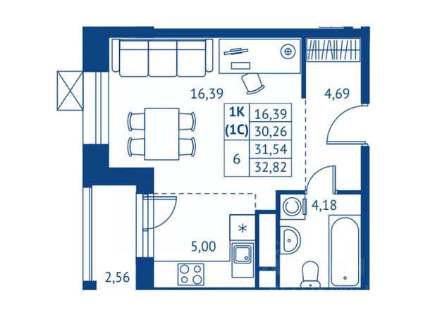 Общая площадь 31,5 метр (по БТИ), комфортная комната - 17 метров, функциональная кухня - 10,5 метров, совмещенный санузел, окна ПВХ.