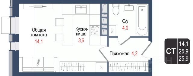 Продаётся студия в строящемся доме (Корпус 3), срок сдачи: II-кв. 2028, общей площадью 25.3 кв.м., на 2 этаже. ЖК "Киноквартал" , МО, г. Королев, мкр. Первомайский, ул. Солнечная, д. 2