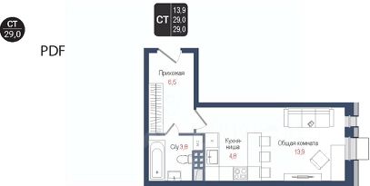 Продаётся студия в строящемся доме (Корпус 3), срок сдачи: II-кв. 2028, общей площадью 28.9 кв.м., на 2 этаже. ЖК "Киноквартал" , МО, г. Королев, мкр. Первомайский, ул. Солнечная, д. 2