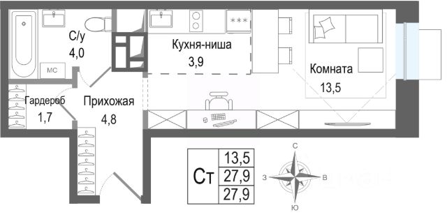 Рассрочка 0% от застройщика с ПВ от 30% на период строительства. Жилой "КИНОКВАРТАЛ" находится в тихом зеленом районе города, на берегу реки Клязьмы. Невысокая этажность, секции от 4 до 8 этажей, все оснащены лифтом. Авторская архитектура, безбарьерная среда, функциональные планировки классического и евро-формата с "французскими балконами", есть уникальные форматы — квартиры в 2-х уровнях. В ряде квартир потолки выше 3-х метров и панорамные окна. Каждый может выбрать что-то своё — жизнь с видом на реку или на красивый закрытый двор "без машин". Жилой "КИНОНВАРТАЛ" — это квартал у воды с благоустроенной набережной, прогулочными пешеходными и вело-дорожками, зонами отдыха и смотровыми площадками. Помимо существующей инфраструктуры окружения, в самом ЖК будут функционировать различные социальные и коммерческие объекты: детский сад на 120 мест с собственной территорией и зонированием под игровые и спортивные занятия детей; кабинет врача общей практики; физкультурно-оздоровительный комплекс; различные торговые помещения и предприятия услуг. В 15 минутах пешком от ЖК строится большая новая муниципальная школа (ввод в 2025 году). Жилой комплекс граничит с территорией реконструируемого санатория с бассейном, SPA и лечебными услугами. Рядом с ЖК "Киноквартал" расположены остановки общественного транспорта, 2 ж/д станции (от 15 минут), также на 2028 году запланировано открытие МЦД-5 "Болшево". Продам квартиру-студию в новостройке в микрорайоне Первомайский в городе Королев.