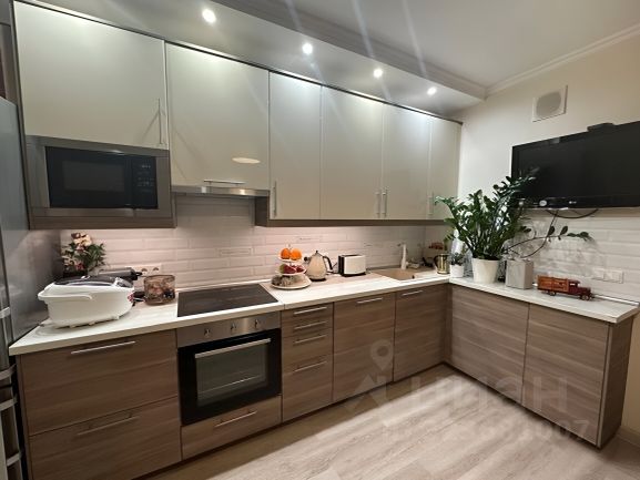 Площадь квартиры 41,6 метра плюс лоджия 2,3 метра. Комната 14,4 метров оснащена встроенной гардеробной размером 1,77*1,43м (2,53м2) объёмом 6,91м3. Размер комнаты 3,38*3,52м позволяет с комфортом разместить широкую 2-спальную кровать. Мультифункциональная кухня-столовая 18,8 метров, где разместился просторный угловой диван-кровать, с выходом на утеплённую лоджию оснащена всей необходимой встроенной техникой: МВП, посудомойка, холодильник, духовка, варочная панель, вытяжка, фильтр воды. Дизайнерское пано, разместившееся в углу, создаёт дополнительный уют. Окна ПВХ с 2-камерными стеклопакетами. При проведении ремонта применялись только высококачественные материалы. При устройстве полов была произведена керамзитная засыпка толщиной 13см, что обеспечивает повышенный уровень тепло- и шумоизоляции. Потолки 2-уровневые. Встроенные светильники по периметру, потолочные 9-плафонные светильники в центральной части в сочетании с лёгкими полупрозрачными плафонами и глянцевый перламутровый натяжной потолок тёмных цветов создают ощущение объёма, сравнимого с присутствием "второго света". В совмещённом санузле размещена полноценная ванна, устроена "гигиеническая" точка. В квартире находится 2 стояка подачи и отведения воды, что обеспечивает независимость в случае проведения ремонтных работ одного из них. Для бесперебойного обеспечения квартиры горячей водой в систему водоснабжения квартиры инсталлирован накопительный водонагреватель. Сплит-система кондиционирования воздуха обеспечивает комфорт в жаркие летние дни.