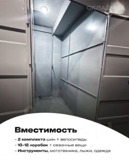 Вместимость: 2 комплекта шин и велосипеды или 10-12 коробок + велосипеды сезонные вещи + инструменты