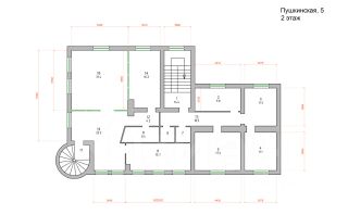 2 этаж - 5 кабинетов, приемная, помещение под архив, кухня - столовая, 2 санузла.