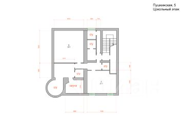 Цокольный этаж - 2 больших зала, 1 небольшой кабинет, раздевалка, приемная (ресепшн), 3 душевых комнаты и 2 санузла.