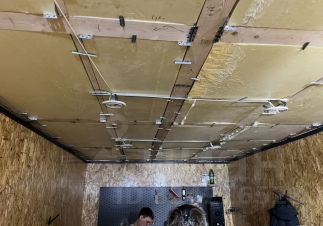Стены, потолок утеплен в 2 слоя (пенофол,пеноплекс) все зашито осб+ покрыто в 3 слоя лака,натяжной потолок . Грамотно сделанное электричество , провода под розетки толстожильные гостовские покупал с запасом разбито все по линиям , 18 розеток , 16 светильников (над верстаком 4,перед въездом в гараж 2,потолок 8, диагональный стык между воротами и потолком 2) светильники продуманно разбиты по линиям (9 включателей) , принудительная вытяжка в стене и в воротах на вход и выход (2 включателя ) все идеально сделано на мой взгляд! Недавно сварили новые ворота , залил наливной пол (наливной пол дорогой специально для мастерских)