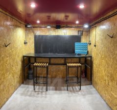 Делался под заказ верстак , отдельно заказывал изготовление кронштейнов под светильники чтоб было максимально удобно работать ( их так же можно использовать как упоры для подвешивания чего-то тяжелого , кронштейны сделаны из 10мм стали (8 штук), заказывал перфорированную панель для подвешивания инструментов определенного размера и толщины ! Внутренняя часть верстака обшита фанерой и осб в несколько слоев для усиления конструкции и смягчения для максимального удобства и комфорта работы на верстаке , специально выведены уголки в середине ножек верстака ( планировалось сделать полку которую при желании можно поднять и освободить место под верстаком) все покрыто специальной противоударной краской так же как и ворота , 2 большие табуретки специально делались под верстак