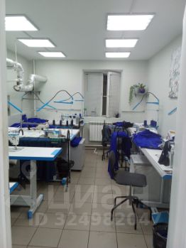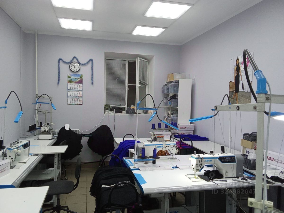 Помещение 215 м² с зонированием (швейный цех, кухня, санузел).