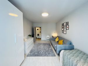 Сдается однокомнатная квартира с дизайнерским ремонтом в доме бизнес-класса ЖК Золотые Ворота, расположенная по адресу: Московская область, г. Королев, ул. Пионерская, д. 13к5. Солнечная, теплая квартира находится на 24-ом этаже 25-и этажного кирпично-монолитного дома. Общая площадь - 43 кв.м, жилая - 18 кв.м, кухня - 10 кв.м. с кухни выход на просторную лоджию с панорамными окнами. Квартира в отличном состоянии, полностью меблирована и укомплектована бытовой техникой. В доме консьерж, рядом подземный паркинг, три лифта, высокие потолки, в коридоре просторная гардеробная. Развитая инфраструктура: рядом школа, детский сад, подземный паркинг, торговый центр, кинотеатр, фитнес центр с бассейном и т.д. В пешей доступности станция пригородных электричек Подлипки-дачные. Рядом с домом автобусная остановка - в Москву и по Королеву. Удобный выезд на Ярославское шоссе.