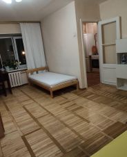 Квартира чистая, четыре года мебели и ремонту, паркет. Вместительный шкаф, две односпальные кровати (можно сдвинуть). Минимум мебели, просторно.