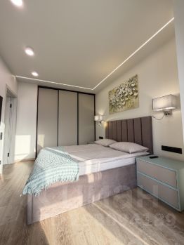 В спальне большая кровать с мягким изголовьем., с удобным матрасом и превосходным постельным бельём премиум класса. Изюминка спальни - кабинет. Кстати, рядом розетка и точечный светильник. Можно позалипать, листая ленту соцсетей, или посмотреть сериал, наблюдая, как меняется город.