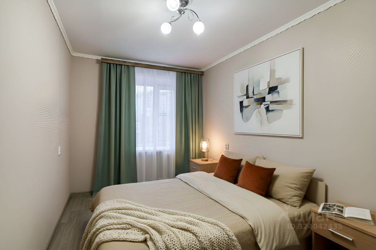 В отдельной спальне большая двуспальная кровать, прикроватные тумбочки и вместительный шкаф. Атмосфера уюта, мягкий свет и продуманные детали делают комнату идеальной для отдыха после насыщенного дня.
