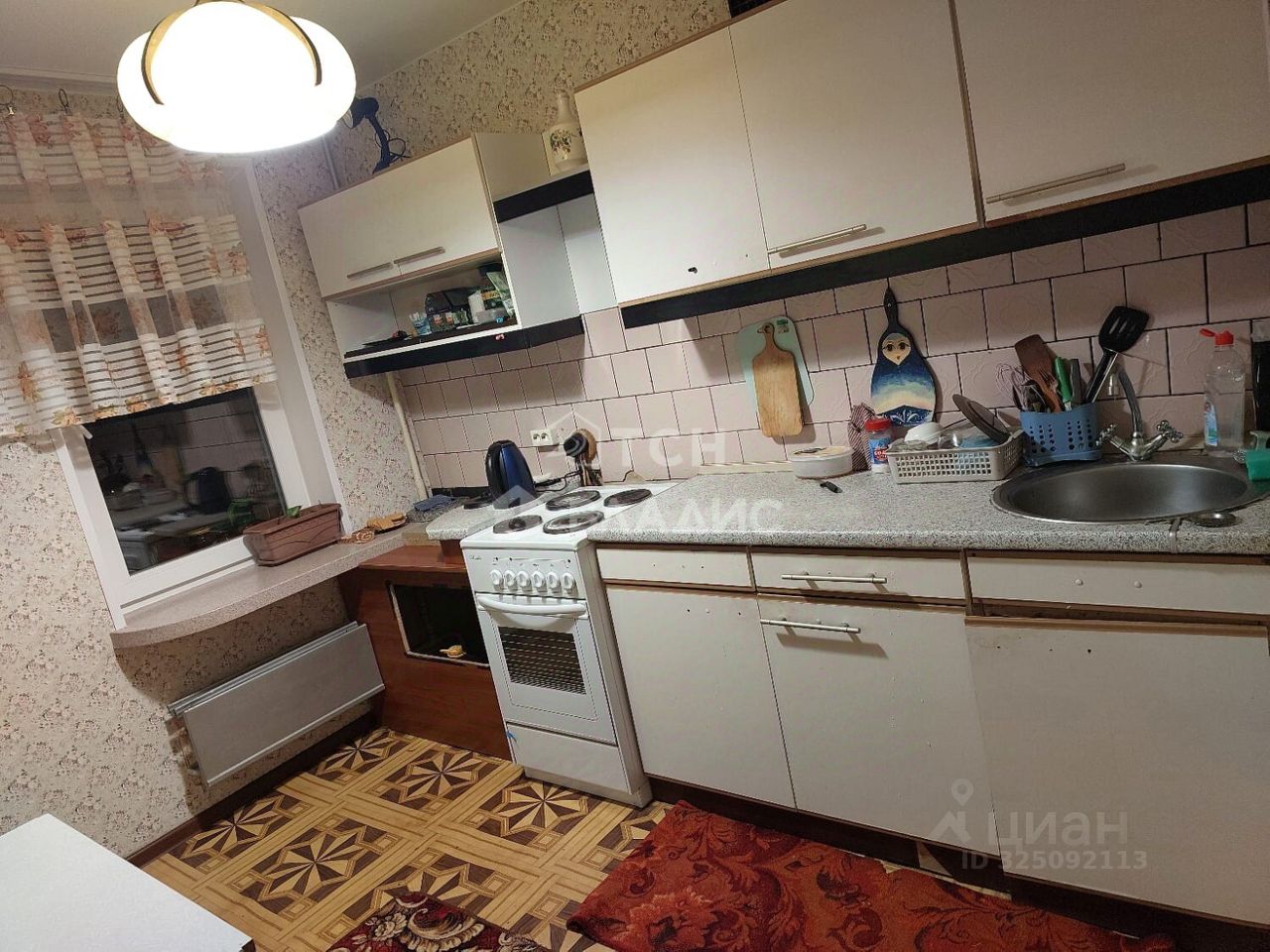 Квартира с простым косметическим ремонтом. Кухня полностью укомплектована: диван, стол обеденный, кухонный гарнитур, большая мойка, электрическая плита (не индукционная), микроволновая печь, 2-камерный холодильник, духовка, вытяжка.