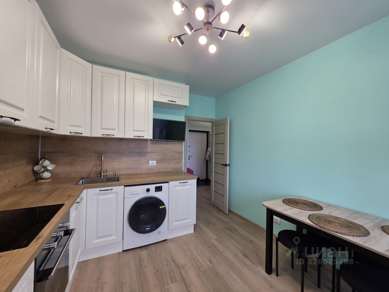 Кухня: встроенный кухонный гарнитур, встроенная варочная панель стеклокерамика, встроенный духовой шкаф, вытяжка, СВЧ. Холодильник. Стиральная машина автомат. Smart TV. Стол обеденный, стулья.