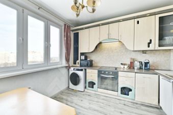 Просторная кухня, место, где легко поместится вся семья. Установлен современный кухонный гарнитур, укомплектованный плитой с духовым шкафом, холодильником и посудомоечной машиной. Две изолированные комнаты: огромное преимущество — комнаты правильной формы, где легко дышится. Раздельный санузел в плитке. Стиральная машина с режимом сушки. Домашний робот — пылесос и кофемашина.