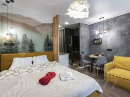 Стильная Forest studio для 4х гостей в МФК "Созвездие" в центре города! — идеальна как для семейного отдыха, так и для командировки. Гарантируем комфортное проживание и чистоту. Предоставляем все необходимые отчетные документы. Дистанционное заселение в любое удобное время! Скачивание приложения, верификация по паспорту с подтверждением личности и подписание договора, займет 5 - 10 минут. В KBАPТИPE ЕCTЬ ВСE HЕОБХОДИМOE ДЛЯ KОМФОРТА: - Двуcпальная кровать застелена постельным бельем и раскладной диван. - Двa кoмплекта полотeнeц для кaждогo гостя (банное, для рук и лица). - Совмещенный санузел и средства личной гигиены. - Телевизор со Smаrt ТV с выходом в интернет. - Прекрасный вид на город с 9 этажа - Удобная розетка рядом с кроватью для зарядки ваших устройств. - Высокоскоростной WIFI. - Бесплатная парковка во дворе дома и у ТЦ Глобус. УДОБНОЕ РАСПОЛОЖЕНИЕ: • За 35 минут можно добраться до м. Комсомольская, ВДНХ и Аэропорта Шереметьево • В 15 минутах ходьбы Ж/Д станция Болшево. • В шаговой доступности находятся магазины Пятёрочка, Винлаб, Fix Price и Еmех. • Рядом доступны парикмахерские, услуги по маникюру, бровям и массажу. • Нотариус и пункты выдачи Озон и Wildberries. • Поблизости находится Парк Костино и городская больница. • Один из самых современных домов в Королёве, предлагающий комфортные условия для жизни! Информация для бронирования: • Максимальная вместимость — до 4 человек (дети без дополнительного спального места не учитываются). • Заезд с 14:00, выезд до 12:00. • Если вы планируете заезд после 18:00, то менеджер свяжется с вами в дату заселения для оплаты оставшейся части проживания до заезда. • Цены могут варьироваться в зависимости от количества суток проживания и дней недели. • При длительном проживании (от 7 суток) — дополнительная уборка в подарок! • Для двух гостей предусмотрен один комплект постельного белья. Если нужен дополнительный, сообщите заранее (оплачивается отдельно). Обратите внимание! Запрещено: -Курение в квартире (все виды). -Проведение мероприятий (вечеринок). -Нарушение правил проживания. -Проживание с животными. Для бронирования выберите дату и оплатите бронь! С удовольствием разместим вас в наших апартаментах Dream Apartmens и позаботимся о комфортном проживании.