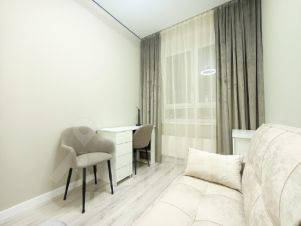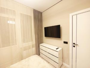 Две изолированные спальни, одна из них оборудована кроватью с подъёмным механизмом, предусмотрен выход на застеклённую лоджию, есть дополнительный телевизор. Вторую комнату можно использовать в качестве детской или кабинета.