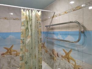 Квартира обставлена мебелью : В большой комнате стенка со шкафами, кровать, тумбочки, На кухне кухонный гарнитур, стол, стулья. В просторном коридоре есть вешалка. На балконе установлена сушилка. Маленькая комната без мебели.