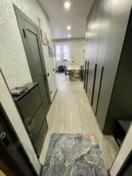 ЖК Валентиновка парк. Малоэтажная застройка, современный район с развитой инфраструктурой. Дом расположен в живописном зеленом районе с экологической чистой локацией города Королев. Сдается квартира с функциональной планировкой, евродвушка. Неординарная планировка позволяет преобразовать кухню-гостиную и спальню в единое пространство. Квартира расположена на втором этаже четырехэтажного дома, построенного в 2016 году. Окна выходят во двор, обеспечивая тишину и спокойствие. Квартира с евроремонтом и готова к проживанию. Полностью укомплектована техникой и мебелью. Новая сантехника и ванна с стильными черными акцентами. Среди социальных объектов: школа на 550 мест (лицей 19) входит в ТОП 500 образовательных учреждений России, два детских садика, салон красоты, клиника, фитнес клуб.