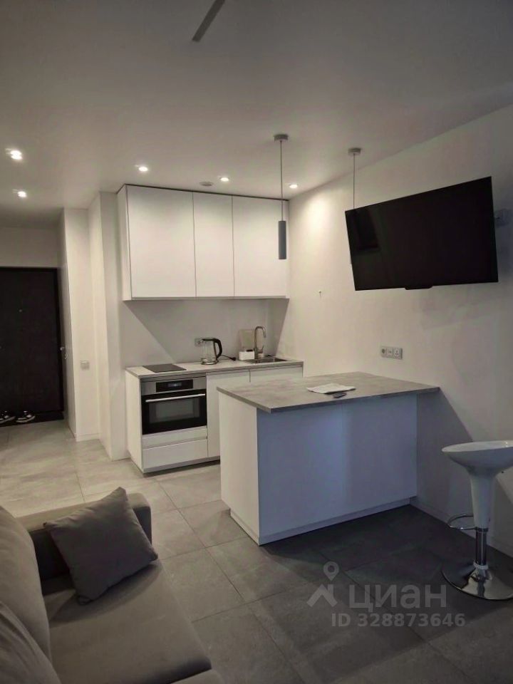 Предлагаем вашему вниманию стильную студию для аренды в современном жилом комплексе 2018 года постройки. Квартира площадью 28 кв. м находится на 4 этаже 22-этажного монолитного дома.