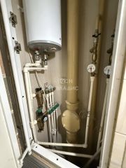 В коридоре предусмотрен функциональный шкаф для разноформатного хранения. Просторный совмещенный санузел в плитке, установлены ванна, стиральная машинка и водонагреватель.