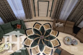 Полы из натурального камня в общих зонах, художественный штучный паркет в жилых помещениях, ванные комнаты, отделанные натуральным камнем, и эксклюзивные рукописные фрески — всё это подчёркивает высокий статус и безупречный вкус.
