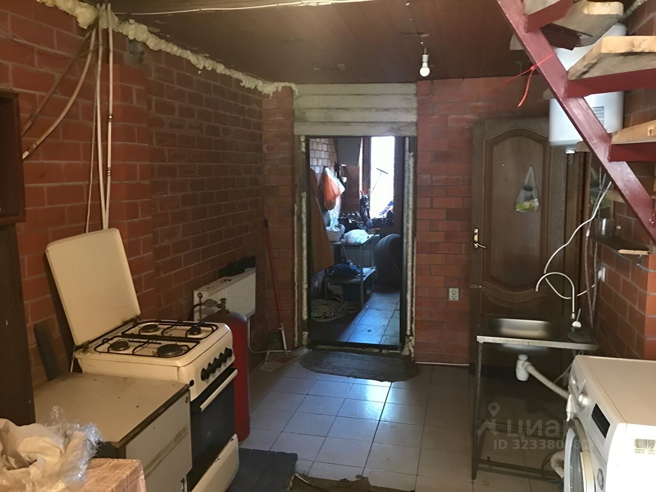 На первом этаже одна комната и крутая лестница.