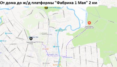 - до автобусной остановки  250 метров; до ж/д платформы Фабрика 1 Мая  2 км.