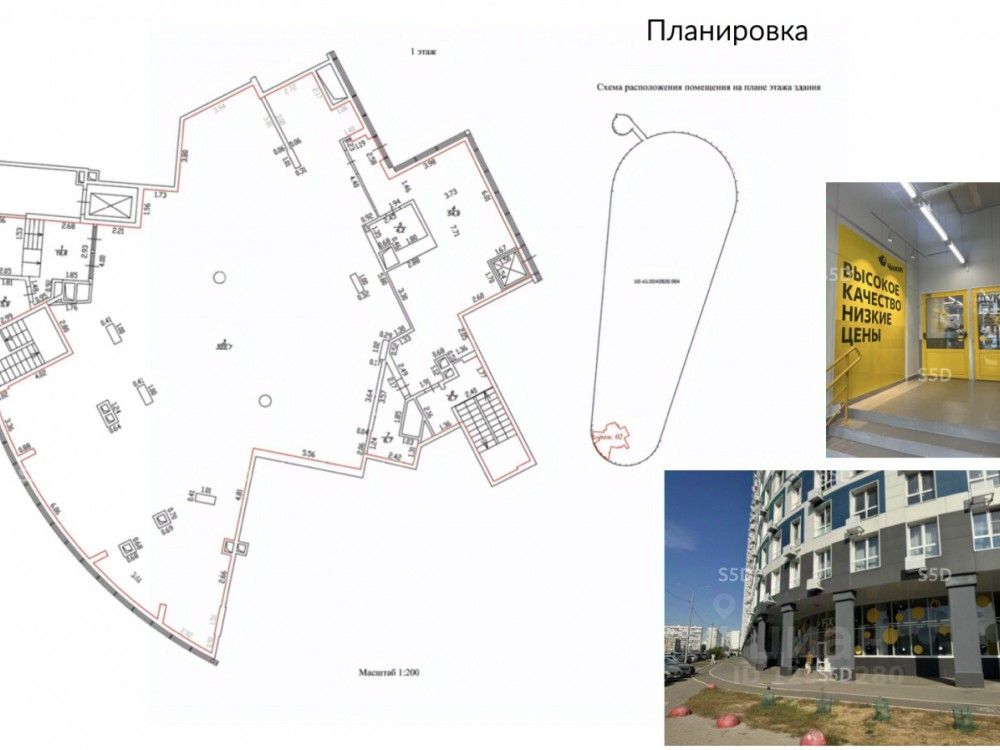 Помещение 420 кв.м., расположено на 1 этаже 2-этажного встроенного здания;