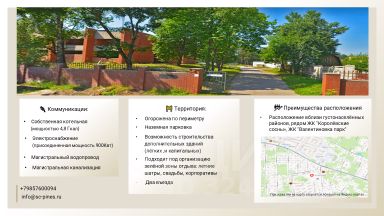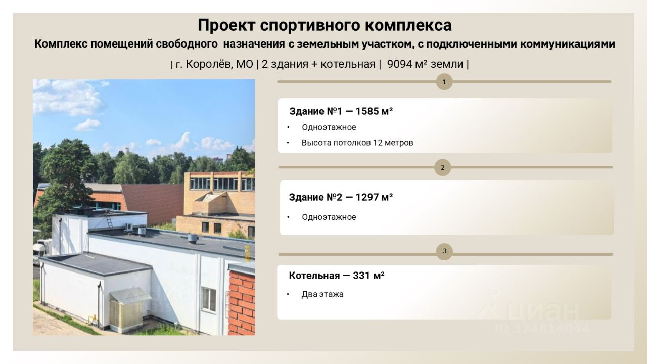 Комплекс, состоящий из трех отдельно стоящих зданий, расположенные земельном участке площадью 9094 м2 МО г. Королев ул. Пролетарская